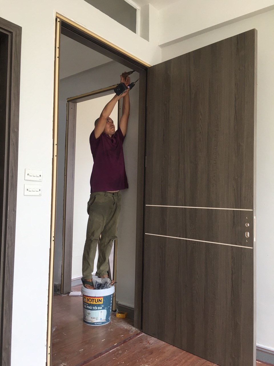 Cung cấp và Lắp đặt Cửa gỗ Composite cho Nhà anh Cường - P.912, chung cư 15T2, số 18 Tam Trinh - Số lượng: 05 bộ.