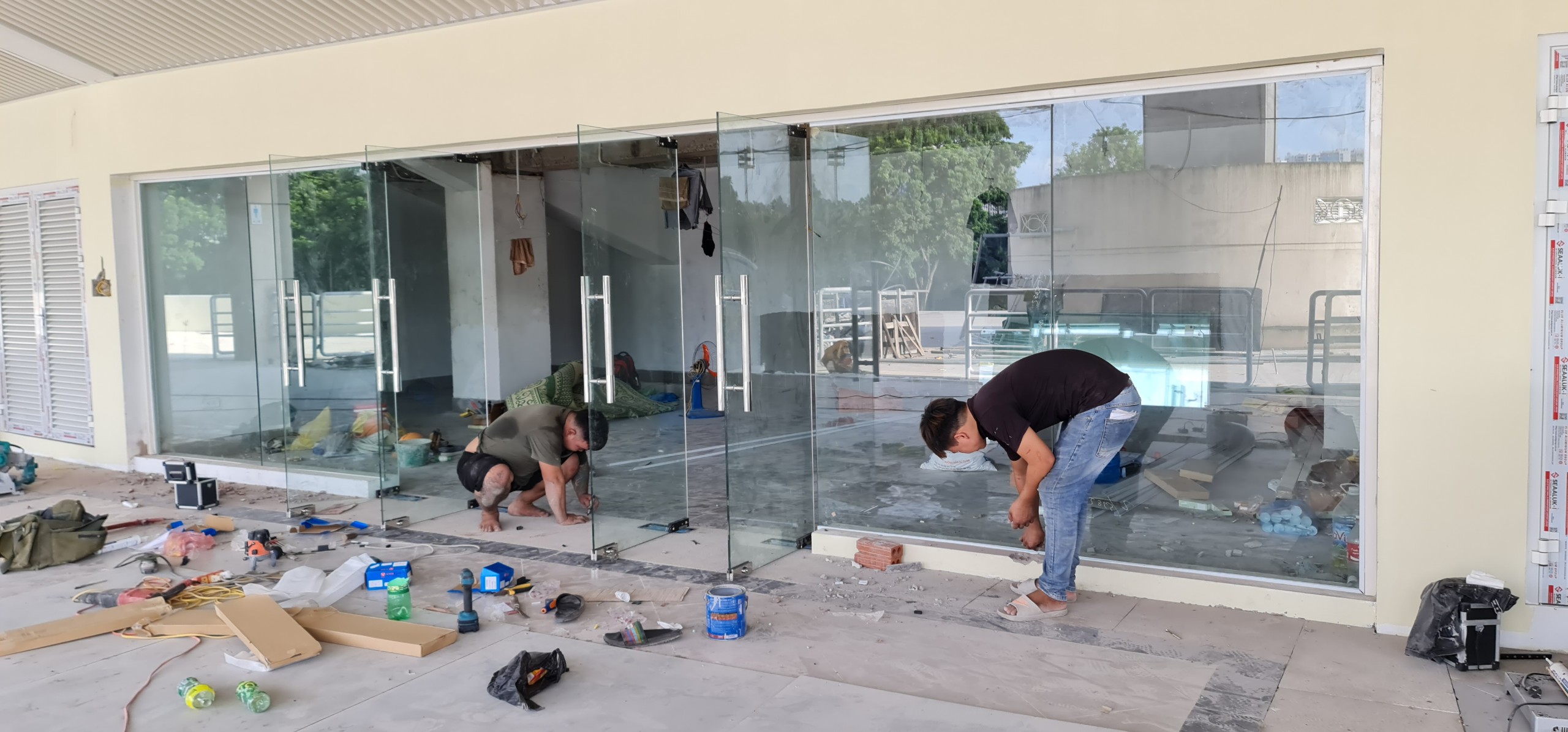 Hạng mục: Cửa kính, vách kính cường lực : 100 m2